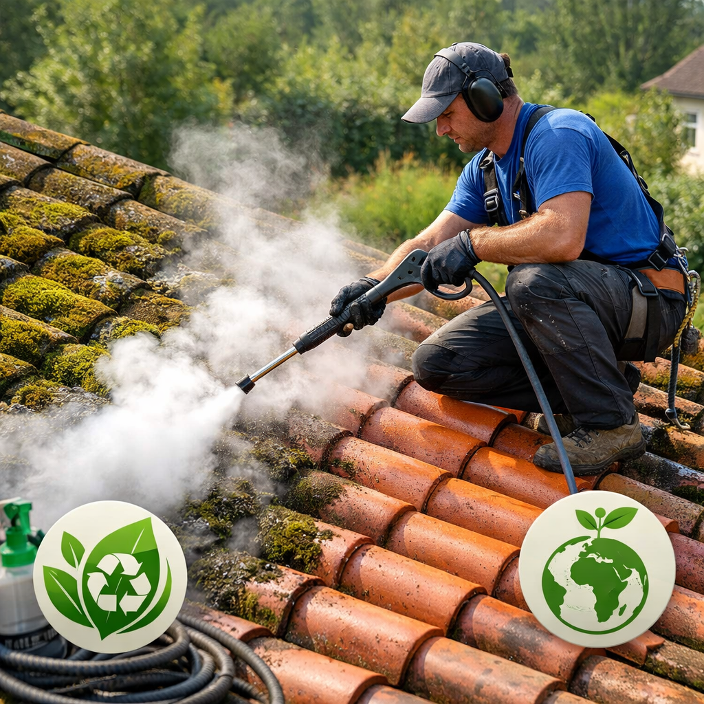 Nous proposons des services professionnels de démoussage et nettoyage écologique de toiture pour particuliers et professionnels. Notre méthode élimine efficacement les mousses, lichens et algues tout en respectant l’environnement grâce à l’utilisation de produits biodégradables et de techniques douces.